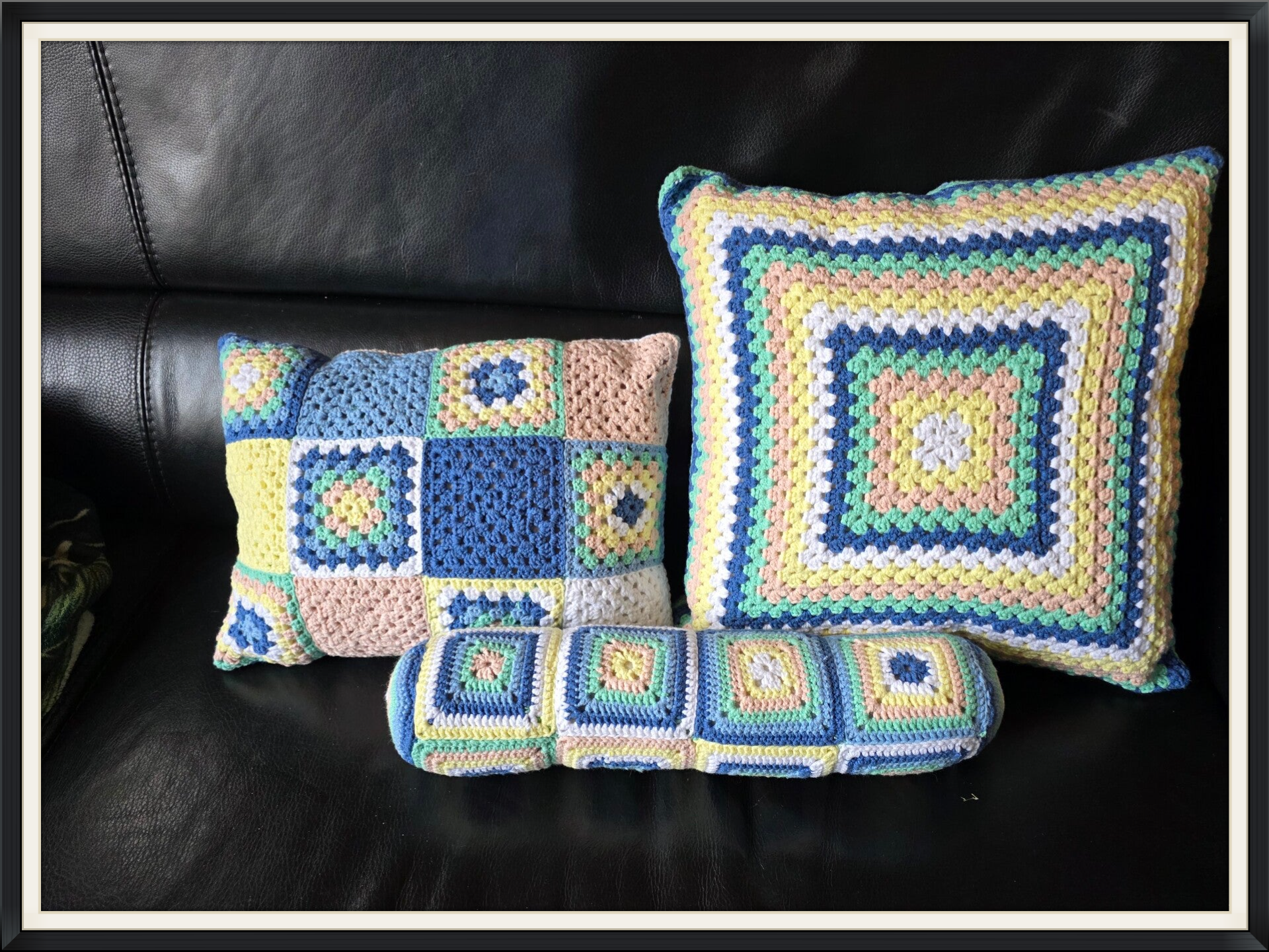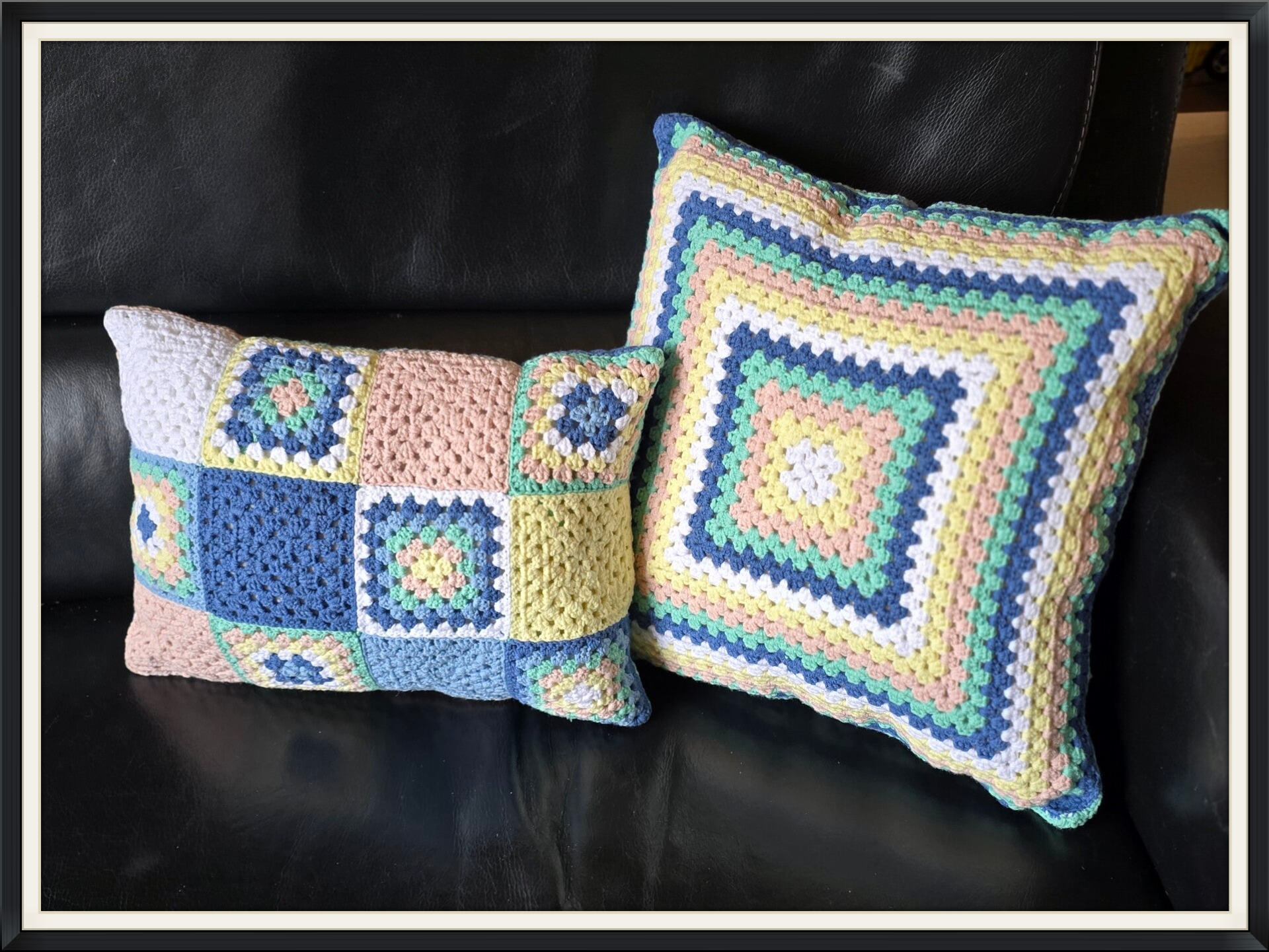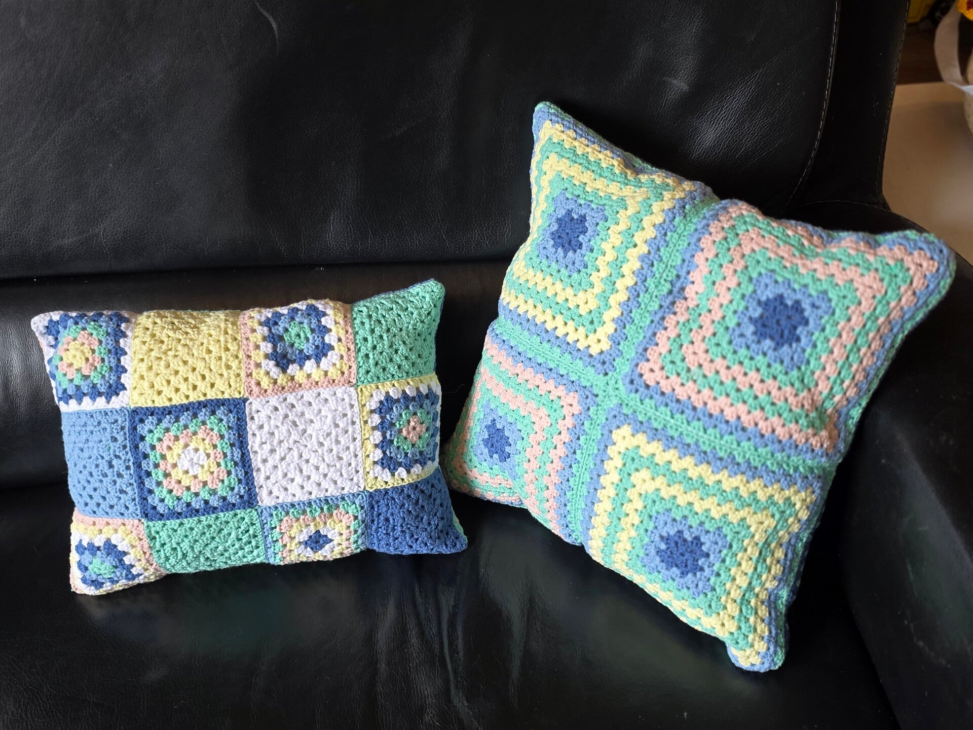 Ze zijn gehaakt met klassieke oma vierkanten, en hebben een zachte maar stevige synthesische vulling.
